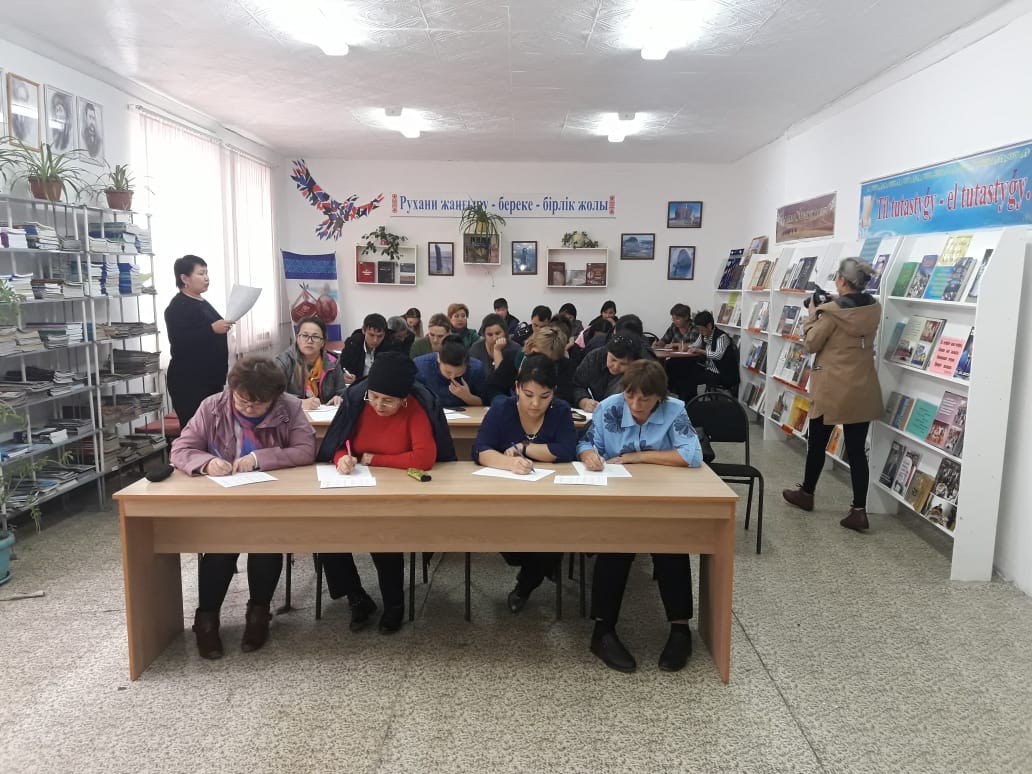 Диктантқа біздің Жарқайың ауданымыз бойынша 50 адам қатысты. Диктанттың мәтіні Президент Әкімшілігінің Қазақстан халқы Ассамблеясының Хатшылығымен келісілген.