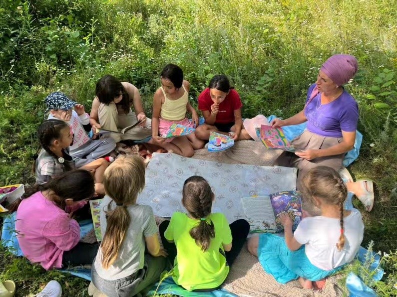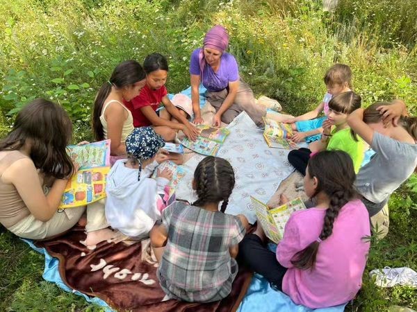 Жаздың бір күнінде күннің жылы шуағы астында демалыстың бір күнін кітаппен өткізгісі келетін балалар жайғасты. Таста-Талды ауылдық кітапханасының кітапханашысы ұйымдастырған «Көгалда оқу».Балалар кітап оқып, әсерлерімен алмасты және, әрине, көңілді және жақсы көңіл-күй атмосферасын тудыратын ашық ойындар болды.