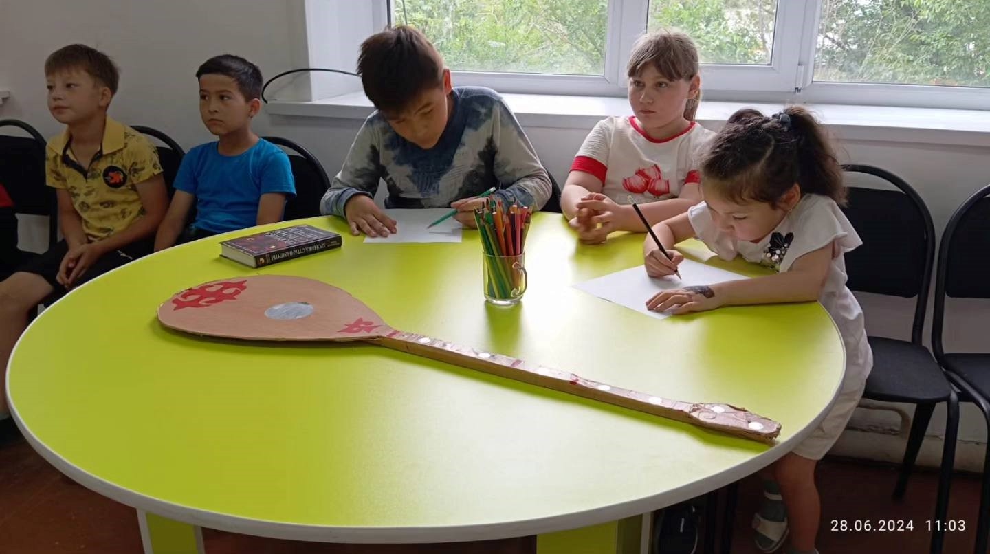 Балалар кітапханасының Оқу Залында Н.К.Крупская атындағы жалпы орта мектебінің жанындағы «Болашақ» лагерінің оқушыларымен «Домбыра – қазақ халқының мұрасы» атты музыкалық сағат өтті. Мақсаты: Халық дәстүрлері туралы түсініктерін қалыптастыру. Міндеттері: Оқушылардың ұлттық музакалық аспаптарға деген танымдық қызығушылығын, қазақтың халық өнері мен әдет-ғұрпына деген қызығушылығын қалыптастыру. Салт-дәстүрге деген сүйіспеншілікке, құрметке тәрбиелеу. Кітапханашы халық пен қоғамдық ұлттық мәдениетті сақтау және жаңғырту идеясы жолында біріктіруге арналған мереке туралы айтты. Келесі кезекте балалар ең үлкен өнертастың бірі болып табылатын домбыраның пайда болуымен байланысты тарихы мен аңызымен танысты. Шара барысында балаларға «ұлттың үні – домбыра»» атты кітап көрме ұсынылды. Іс – шара соңында балалар жұмбақтар шешіп, «Иә немесе жоқ», «Домбыраның суретін сал», «Домбыраны бер» ойындарын ойнады.