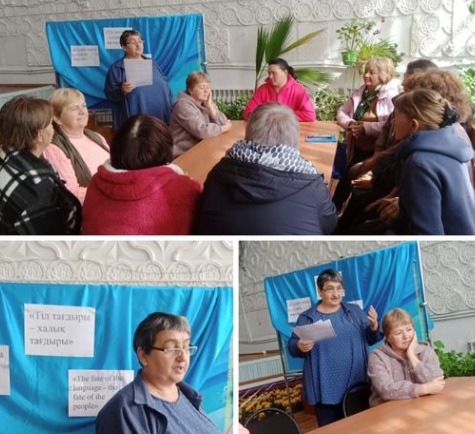Кітапханашы С. Львовское мен СДК қызметкерлері "Тіл - татулық тірегі" атты дөңгелек үстел өткізді. "Тілдер күніне" арналған іс-шара: елімізде тұратын әр түрлі ұлттардың тілдерінің әртүрлілігі мен сұлулығын және олардың Қазақстан халқының отбасындағы бірлігін көрсету мақсатында өткізіледі.