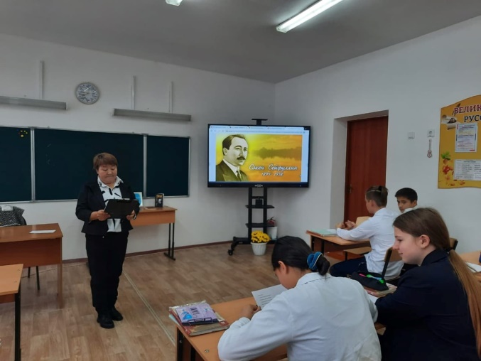 Валихановская сельская библиотека провела мероприятие ,к 130- летию со дня рождения Сакена Сейфуллина. Беседу на тему „ Час вопросов и ответов“ посетили читатели 6-9 кл. Наш разговор шёл о историко- мемуарном романе „ Тернистый путь"(1927г). Сейфуллин показывает в романе, борьбу казахского народа против царизма.Он был за советскую власть как любой революционер.