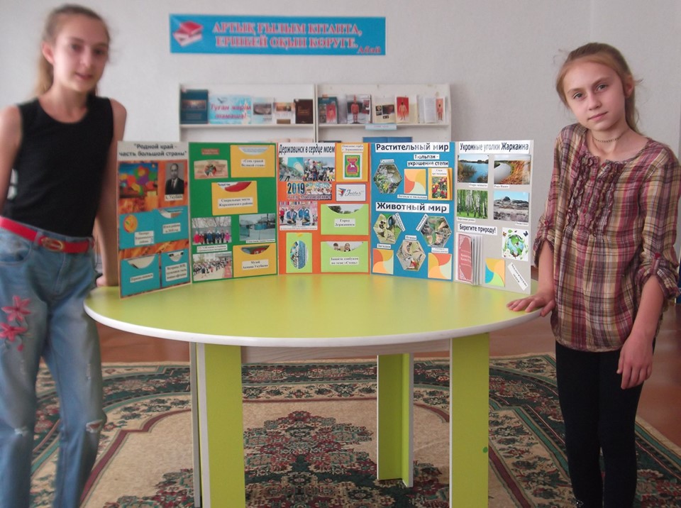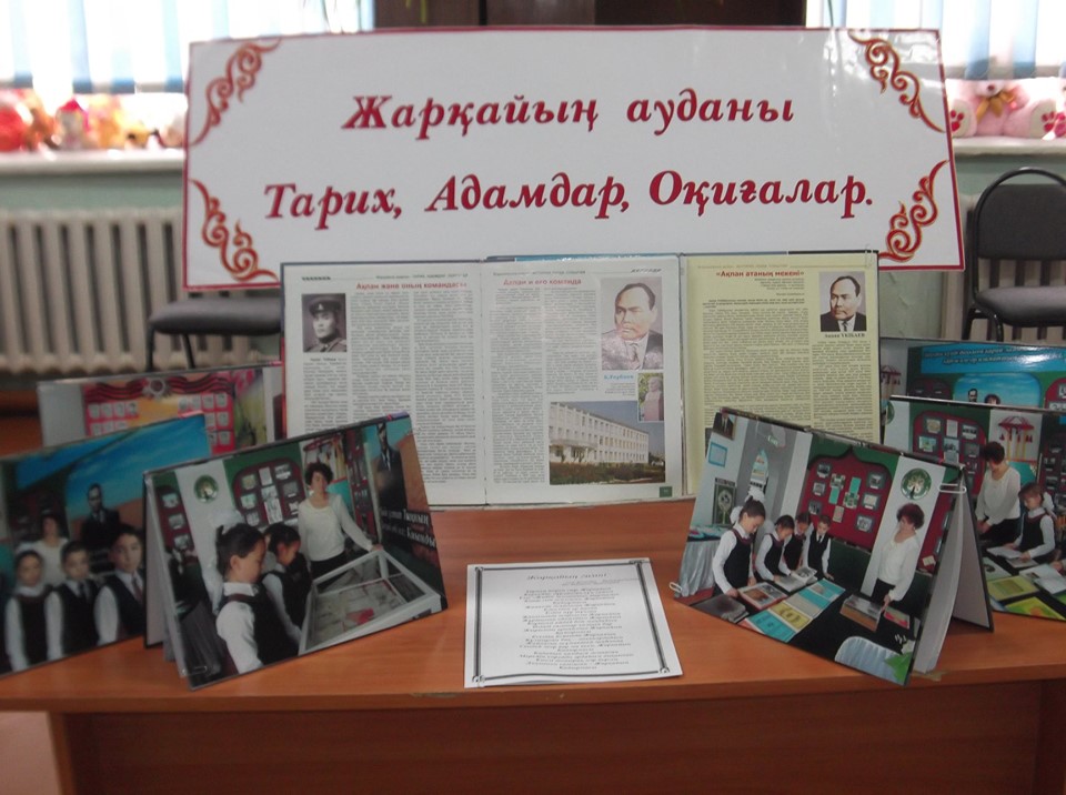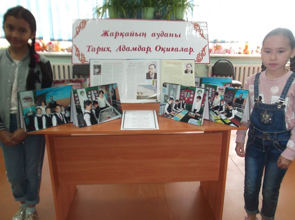 Вниманию ребят была оформлена выставка книг, фотографий посвященных Жаркаинскому району, городу Державинску, легендарному земляку, одного из основателей нашего района, гражданину с большой буквы – Акпану Укубаеву.
